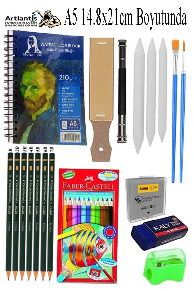 Ürün Adı: Telli Suluboya Bloğu Kağıdı A5 210gr 20 Yaprak İnce Dokulu Gölgelendirme Zımpara Aquarell Kuruboya Dereceli Kalem Uzatma
