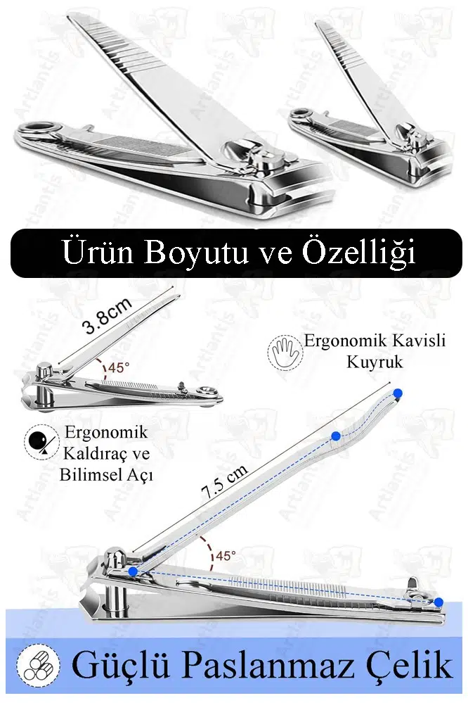 Premium Paslanmaz Çelik: Güçlü paslanmaz çelik hassas bıçaklardan üretilen tırnak makasları, uzun süreli kullanımda paslanmayı önler, gümüş cilalı pürüzsüz yüzeyi, şık ve sade yapısıyla dayanıklıdır.