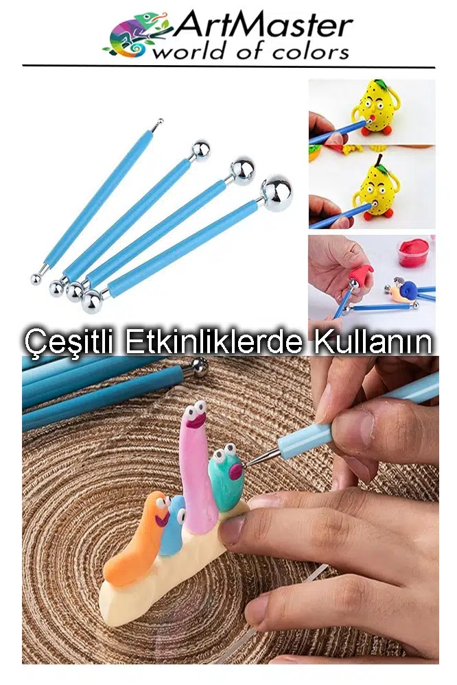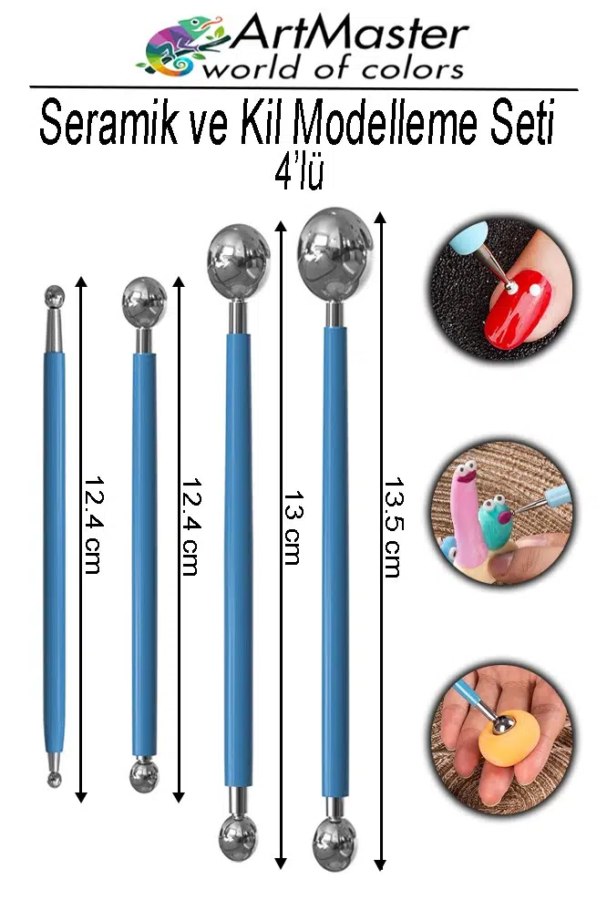 Ürün Adı: Top Uçlu Seramik ve Kil Modelleme Seti 4 Lü 1 Paket Pasta Şekil Verme ve Modelleme Şeker Hamuru Şekillendirme Pasta
