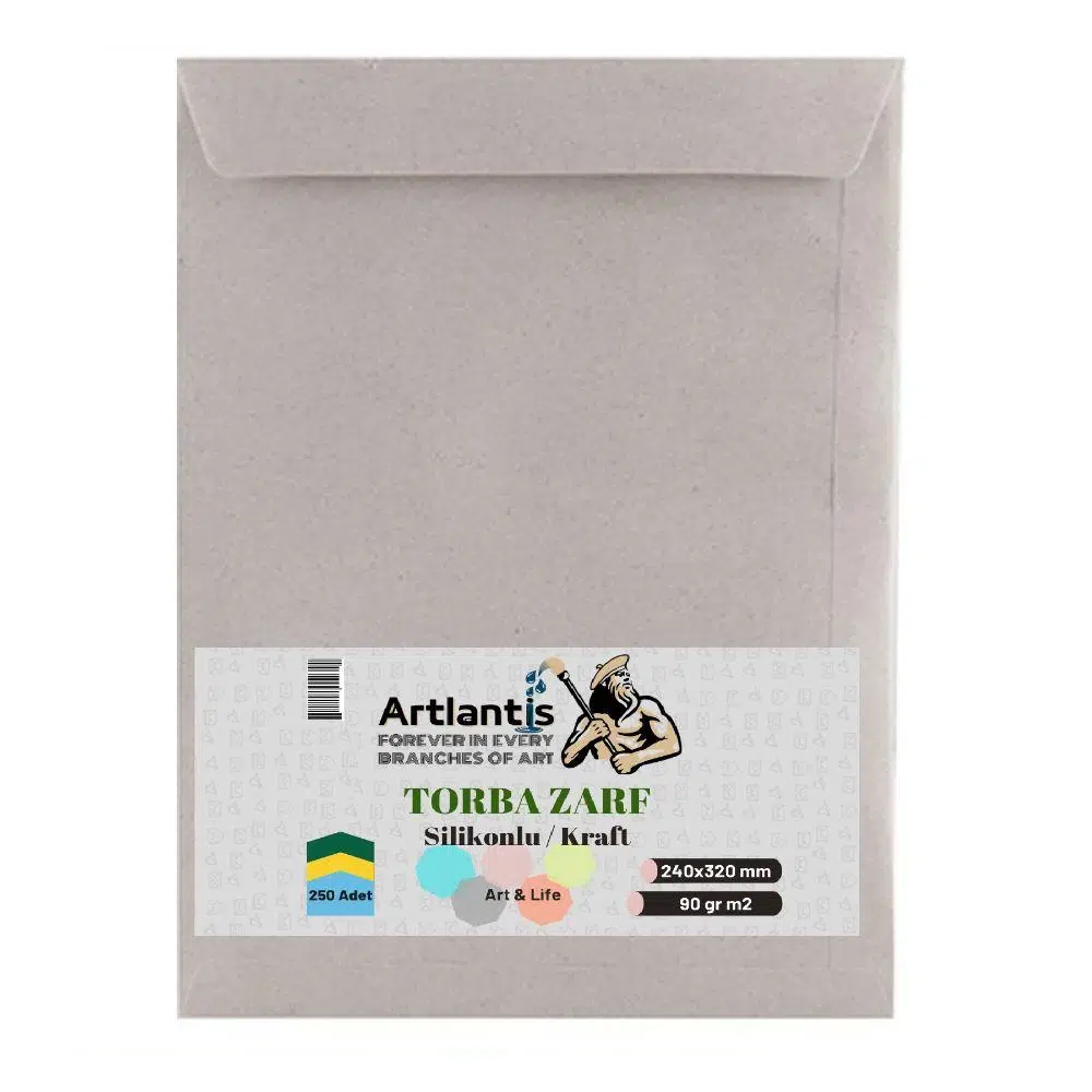 EtiketlerTorba Zarf 24x32 Cm Kraft 90 Gr Silikonlu 250'li 1 Paket Artlantis 240*320 Mm Torba Zarf Kraft 250 li 1 Paket
