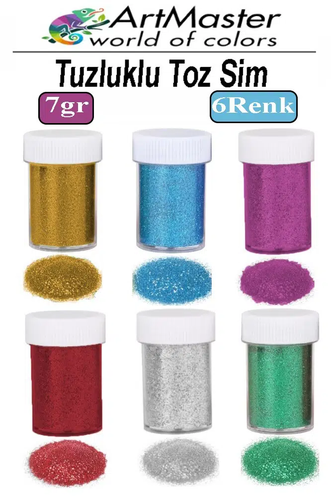 Ürün Adı: Artmaster Toz Sim 6 Renk Tuzluklu 7 gr 6 Adet Renkli Okul Etkinlik Dekorasyon Toz Sim Epoksi Reçine Süs Karışık Renk