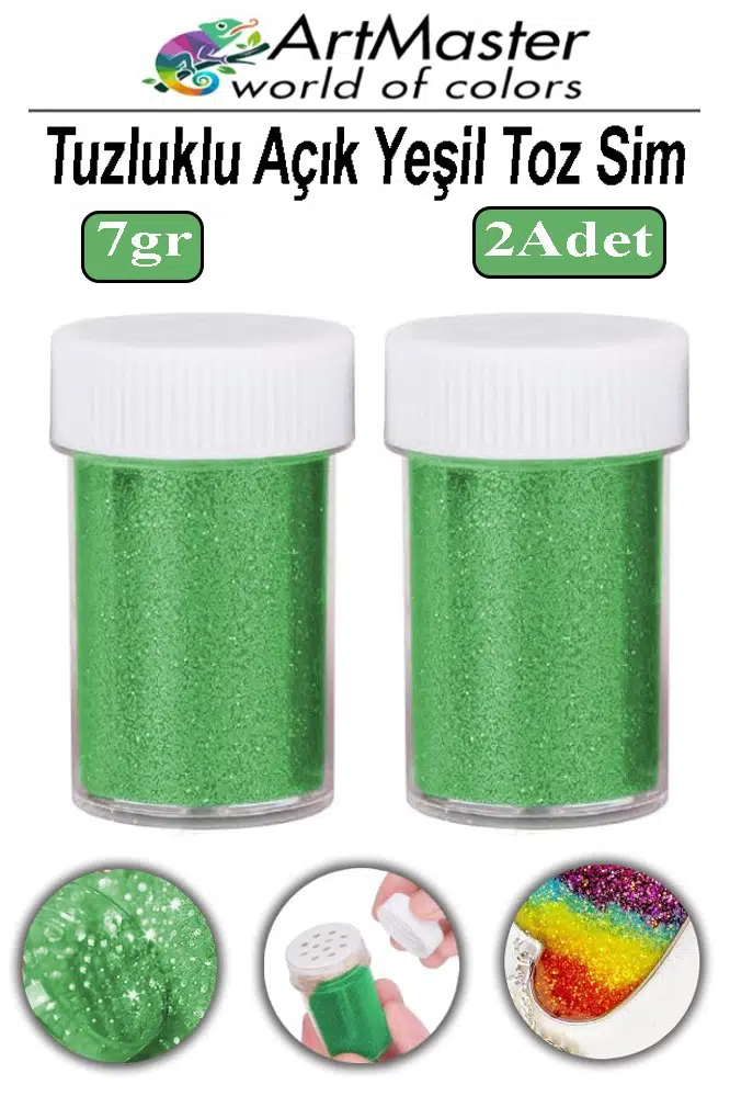 Ürün Adı: Toz Sim Açık Yeşil 2 Adet 7 Gr Tuzluklu Etkinlik Ders Okul Slime Dekorasyon Renkli Toz Sim Dekor Süsleme