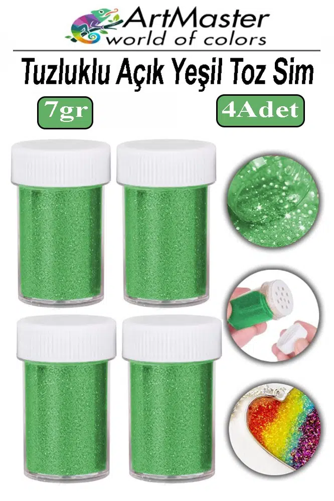 Ürün Adı: Artmaster Toz Sim Açık Yeşil 4 Adet 7 Gr Tuzluklu Etkinlik Ders Okul Slime Dekorasyon Renkli Toz Sim Dekor Süsleme