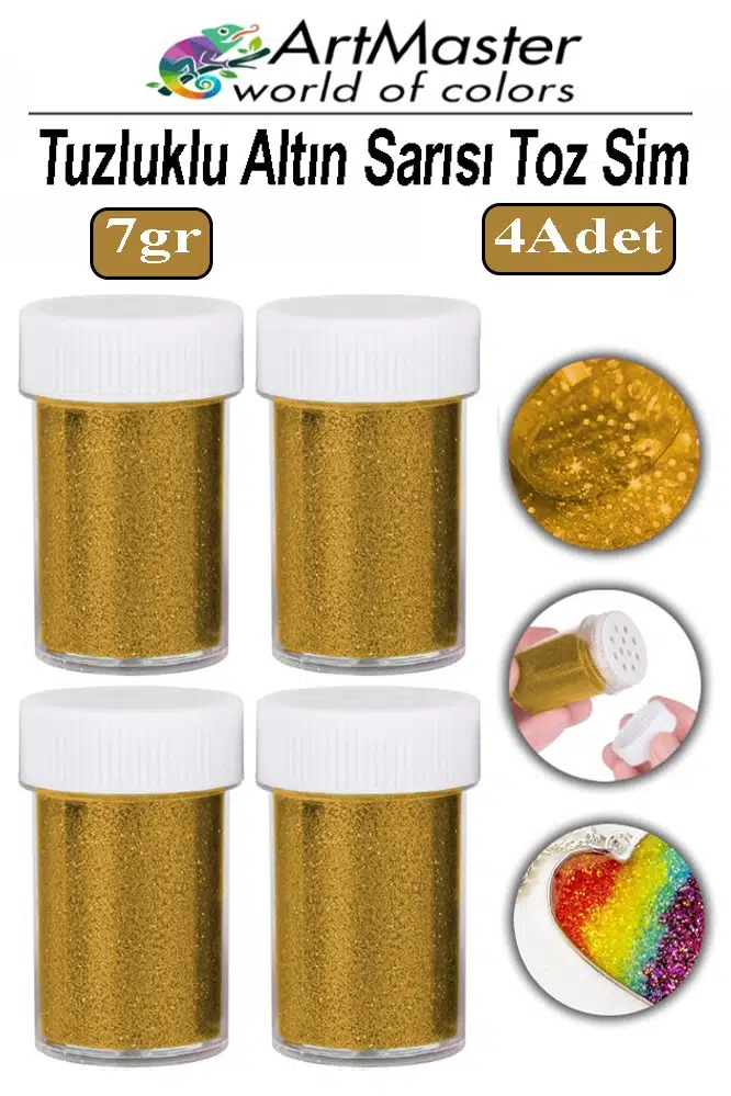 Ürün Adı: Artmaster Toz Sim Altın Sarı 4 Adet 7 Gr Tuzluklu Etkinlik Ders Okul Slime Dekorasyon Renkli Toz Sim Dekor Süsleme