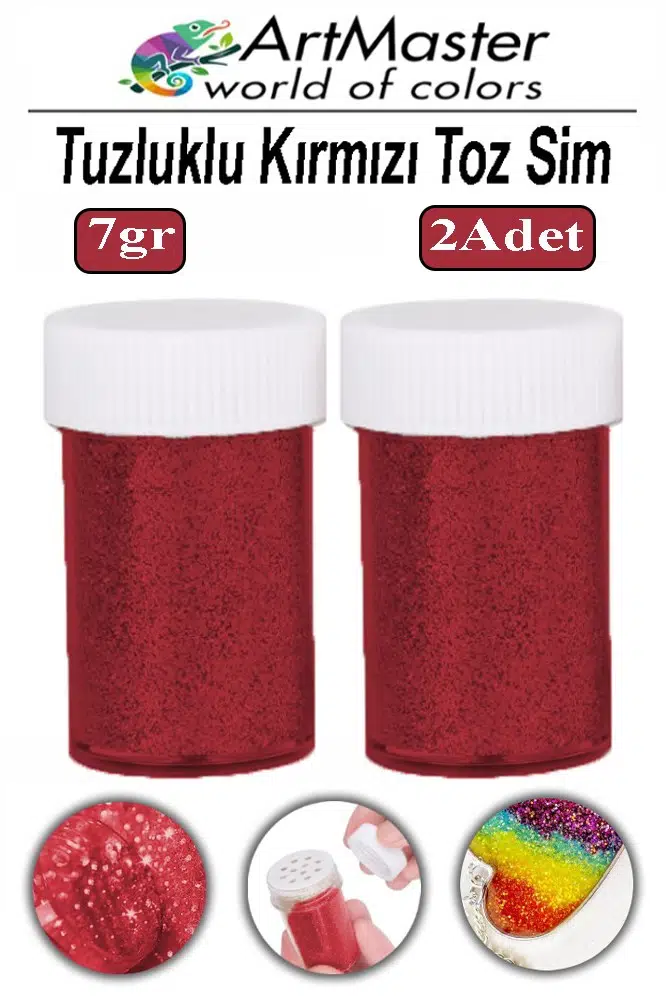 Ürün Adı: Artmaster Toz Sim Kırmızı 2 Adet 7 Gr Tuzluklu Etkinlik Ders Okul Slime Dekorasyon Renkli Toz Sim Dekor Süsleme