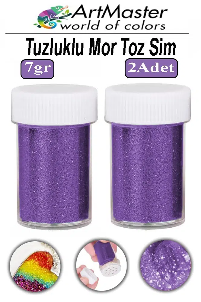 Ürün Adı: Artmaster Toz Sim Mor 2 Adet 7 Gr Tuzluklu Etkinlik Ders Okul Slime Dekorasyon Renkli Toz Sim Dekor Süsleme