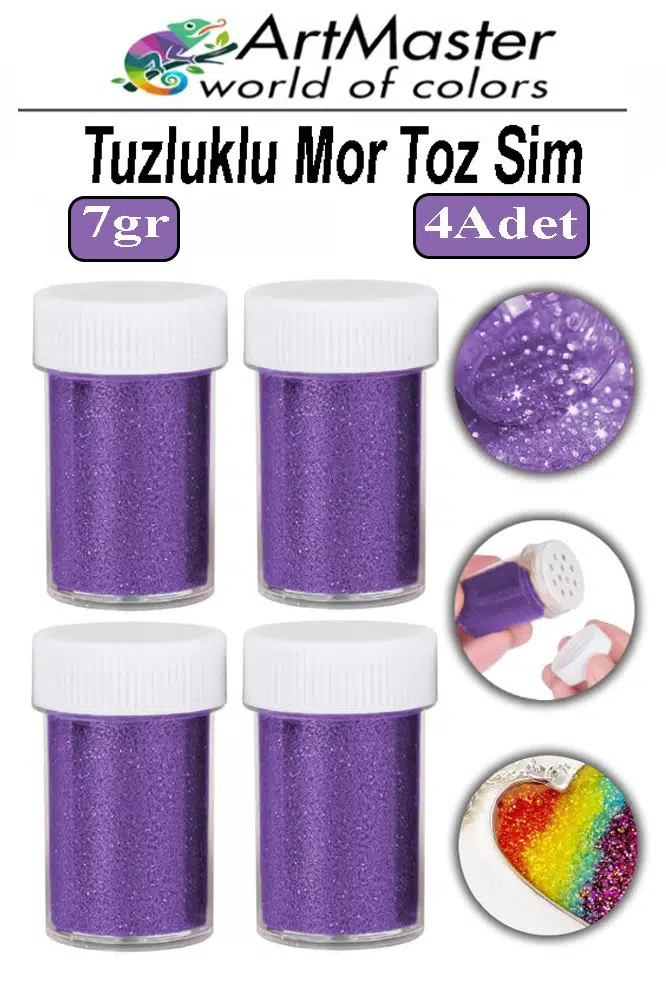 Ürün Adı: Artmaster Toz Sim Mor 4 Adet 7 Gr Tuzluklu Etkinlik Ders Okul Slime Dekorasyon Renkli Toz Sim Dekor Süsleme