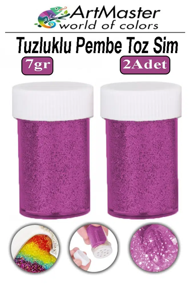 Ürün Adı: Artmaster Toz Sim Pembe 2 Adet 7 Gr Tuzluklu Etkinlik Ders Okul Slime Dekorasyon Renkli Toz Sim Dekor Süsleme