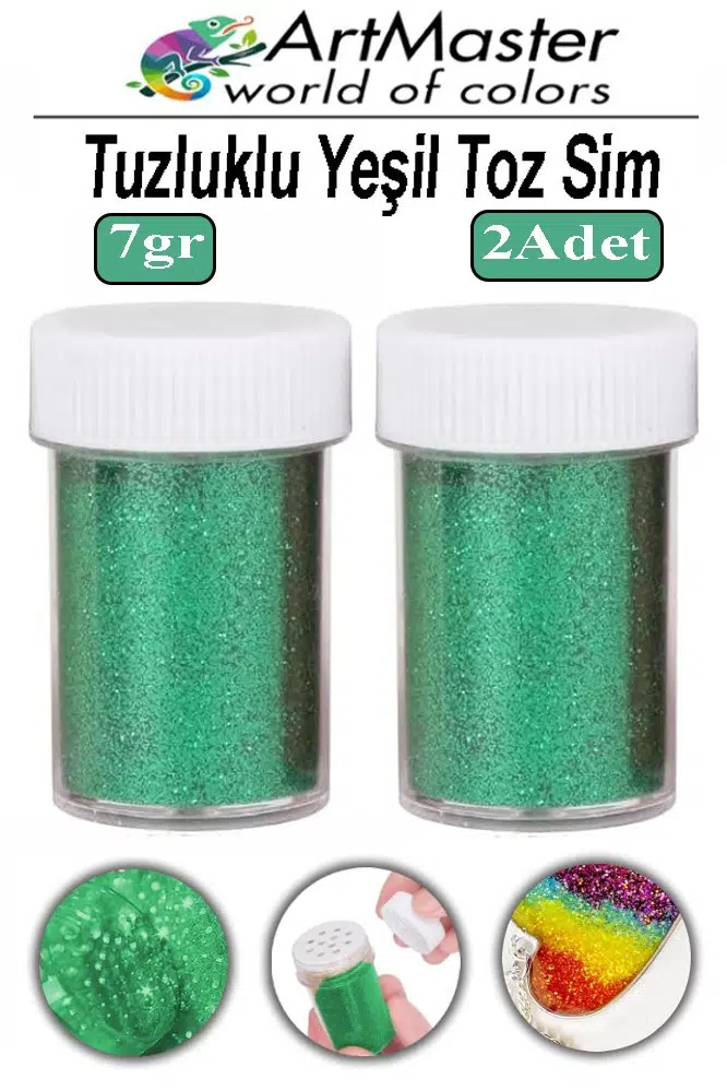 Ürün Adı: Artmaster Toz Sim Yeşil 2 Adet 7 Gr Tuzluklu Etkinlik Ders Okul Slime Dekorasyon Renkli Toz Sim Dekor Süsleme