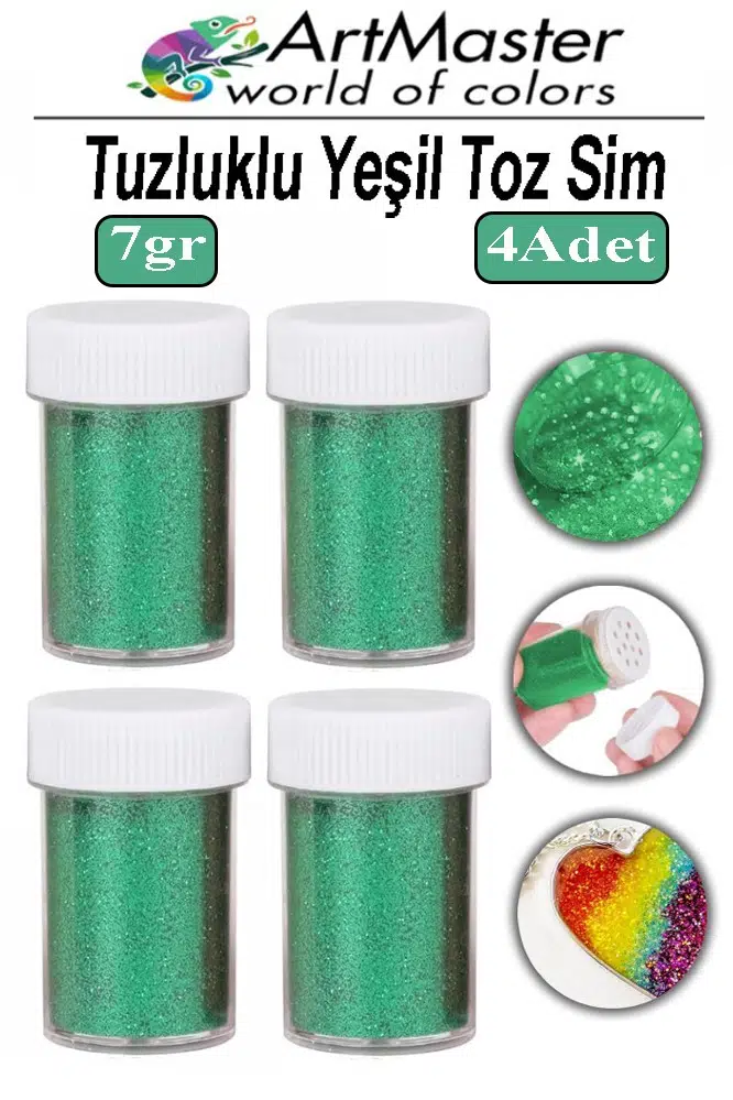 Ürün Adı: Artmaster Toz Sim Yeşil 4 Adet 7 Gr Tuzluklu Etkinlik Ders Okul Slime Dekorasyon Renkli Toz Sim Dekor Süsleme