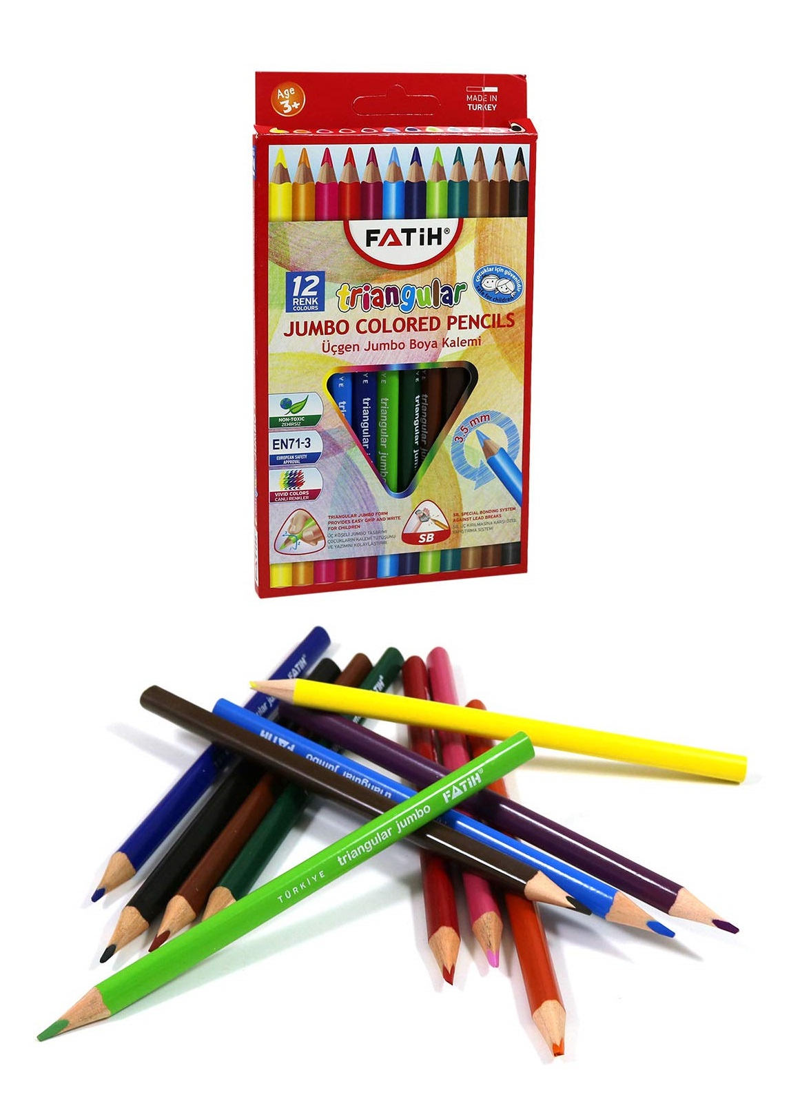 Ürün Adı: Fatih Kuru Boya Triangular 12 Renk Tam Boy Jumbo Karton Kutu