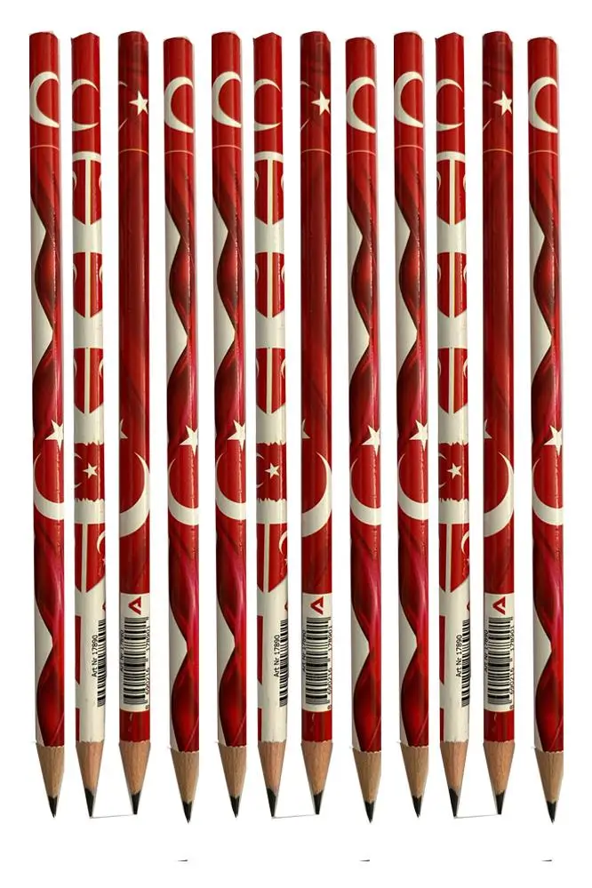 Ürün Adı: Türk Bayraklı Yuvarlak Kurşun Kalem 12 Adet 1 Paket Fatih Kurşun Kalem 2B Siyah Kurşun Kalem Penguen Desenli 2 B Kalem