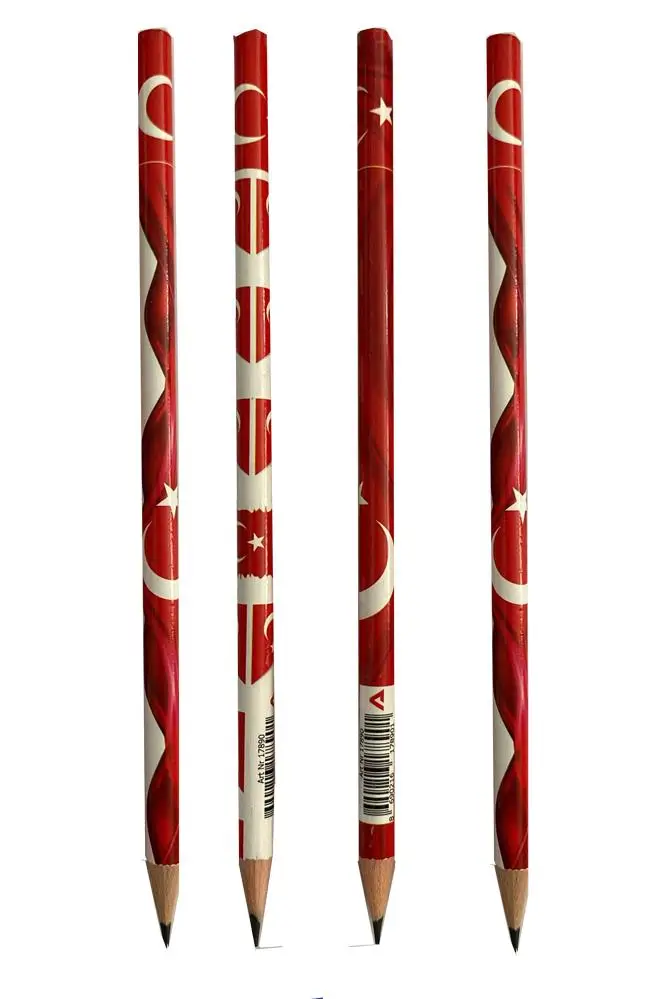 Ürün Adı: Türk Bayraklı Yuvarlak Kurşun Kalem 4 Adet 1 Paket Fatih Kurşun Kalem 2B Siyah Kurşun Kalem Türk Bayrak Desenli 2 B Kalem