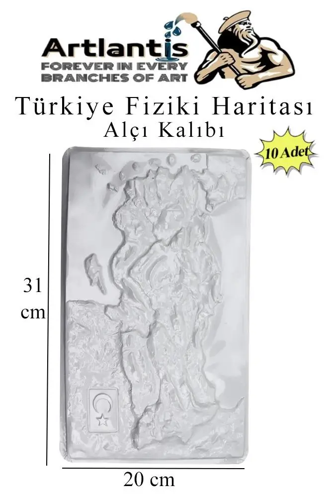 Ürün Adı: Türkiye Harita Alçı Kalıbı A4 20x31 cm 10 Adet Türkiye Fiziki Harita Kabartma Alçı Kalıbı Okul Etkinlik