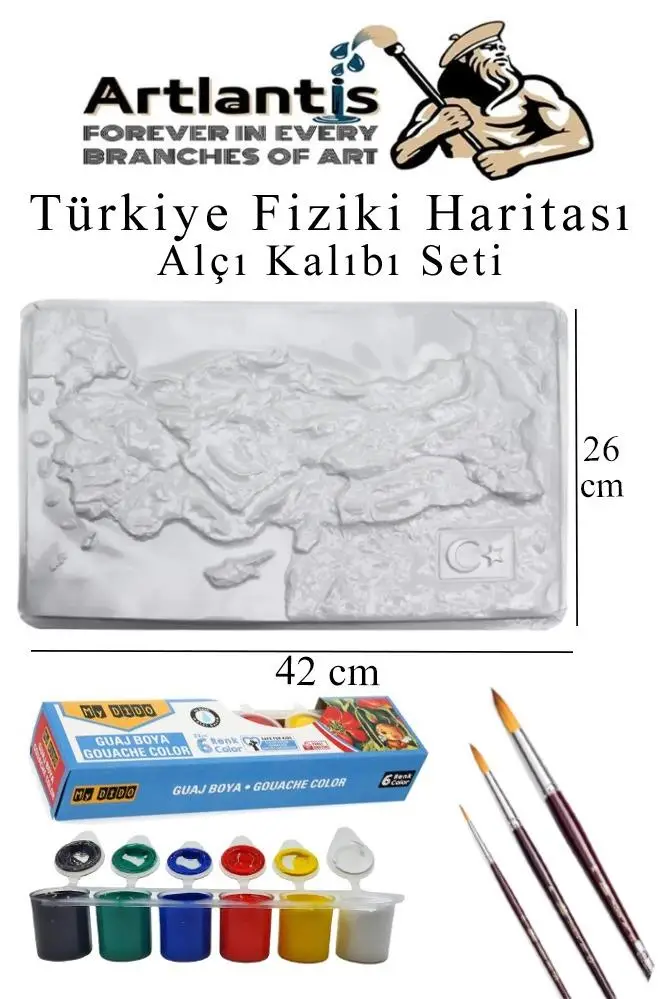 Ürün Adı: Türkiye Harita Alçı Kalıbı Seti A4 26x42 cm 1 Adet Türkiye Fiziki Harita Kabartma Guaj Boya Fırça Set Okul Hobi Etkinlik