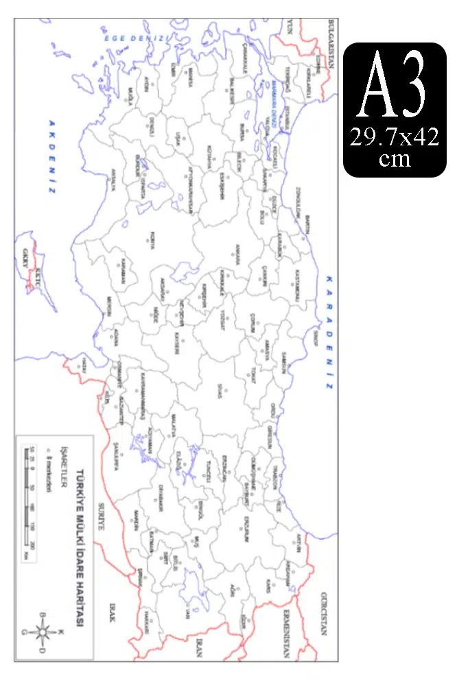 Ürün Adı: Türkiye Mülki İdare Haritası A3 10 Adet 29.7x42 cm Türkiye Mülki İdare Harita Fotokopi Proje Ödev Doldurulabilir Okul