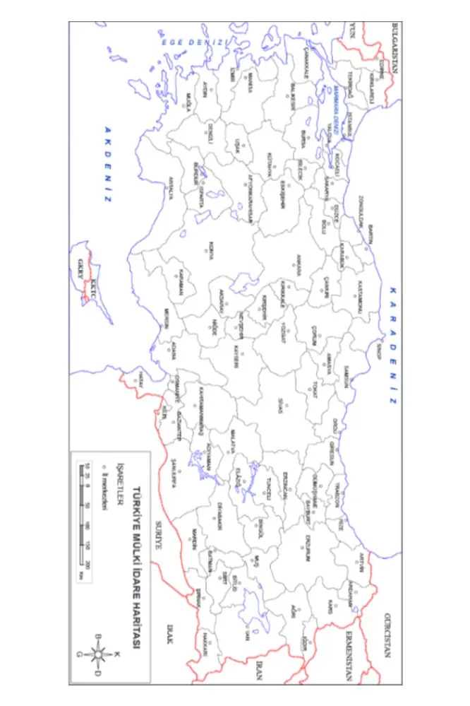 Ürün Adı: Türkiye Mülki İdare Haritası A4 10 Adet 21x29.7cm Türkiye Mülki İdare Harita Fotokopi Proje Ödev Doldurulabilir Okul