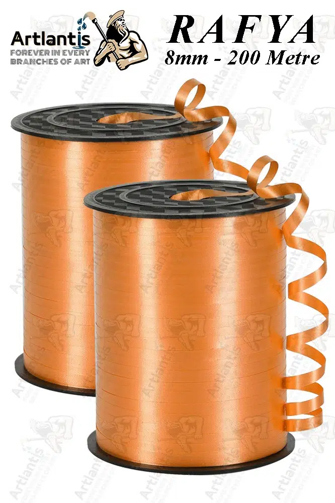 Ürün Adı: Turuncu Rafya Şerit Kurdela 2 Adet 8mm 200 Metre Rabant Rafya Renkli Hediye Paketleme İpi Kurdela Balon Bağlama Ponpon