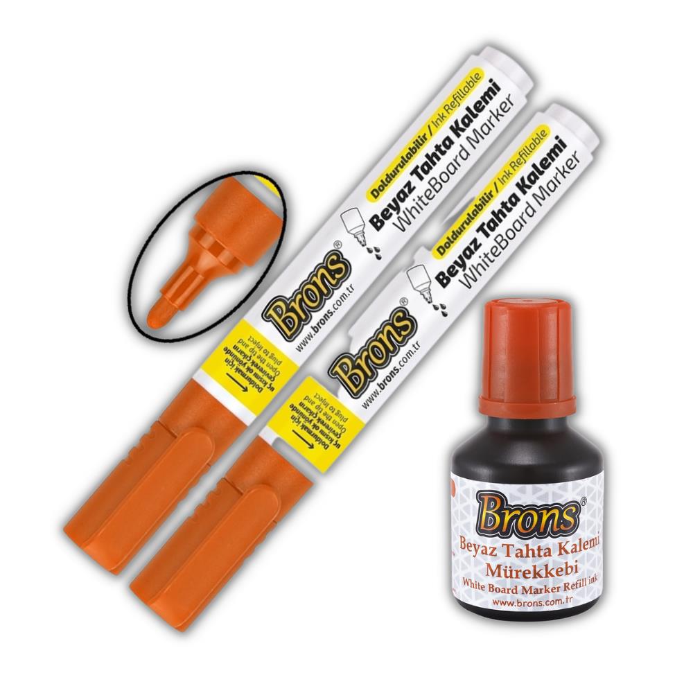 Ürün Adı: Brons Turuncu Yazı Tahta Kalemi Doldurulabilir 2 Adet ve Silinebilir Mürekkep 30 ml 1 Adet Brons Yazı Tahta Kalem Seti