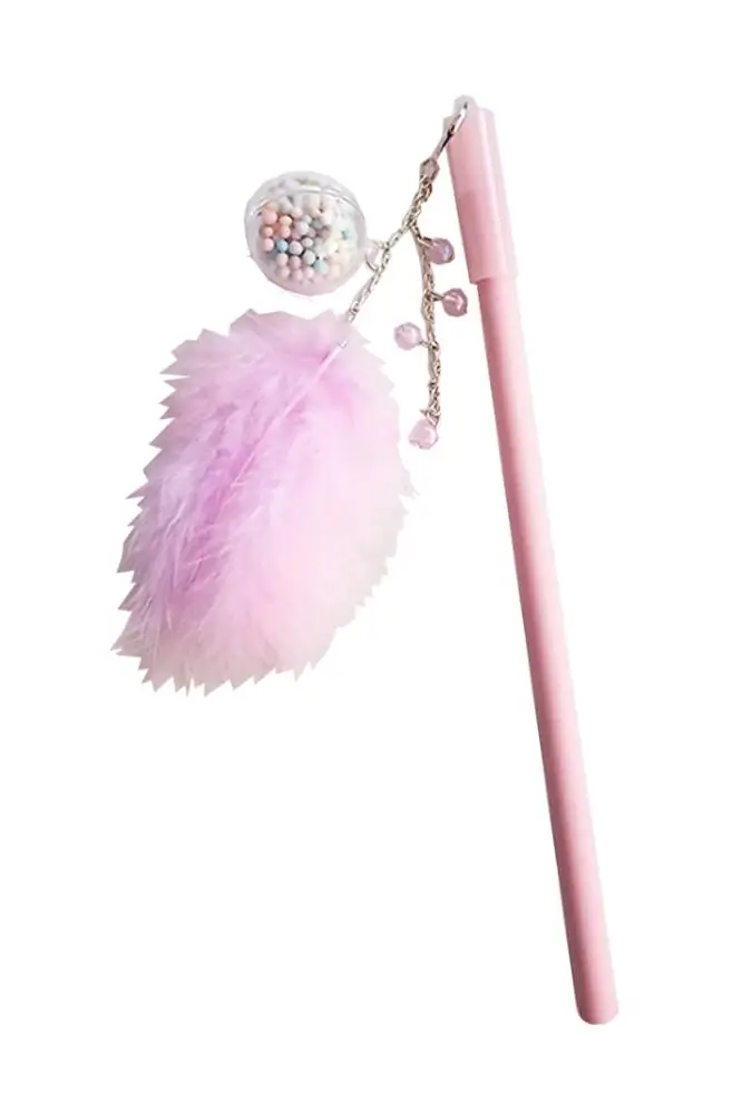 Ürün Adı: Tüylü Renkli Toplu Kurşun Kalem Pembe 1 Adet Boncuklu Süslü Kurşun Kalem Hediye Kalem Figürlü Sevimli Kalem