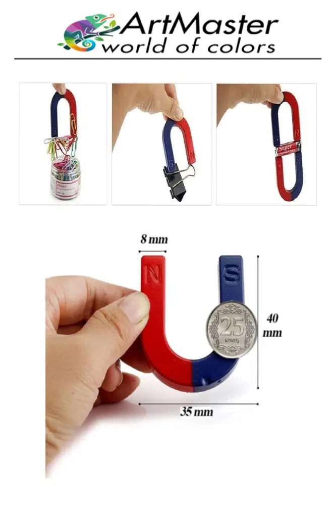 Ürün Adı: Artmaster U Şekilli Mıknatıs 1 Adet Deney Malzemesi Kırmızı Mavi Boyalı Mıknatıs Okul Projeleri İçin U Şekilli At Nalı Mıknatıs
