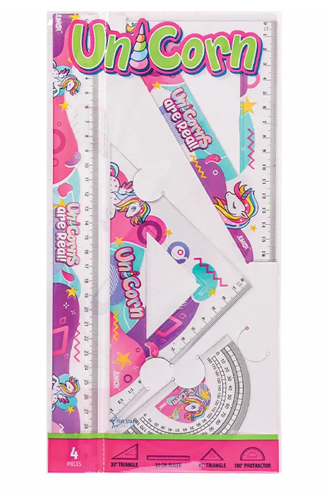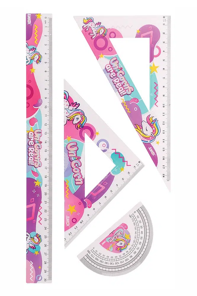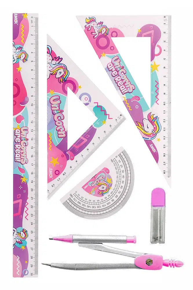 Ürün Adı: Unicorn Cetvel Takımı 30 Cm 1 Paket Cetvel Gönye İletki Şeffaf Çizim Takımı Pergelli Çizim Seti 4 Parça Kız Çocuk