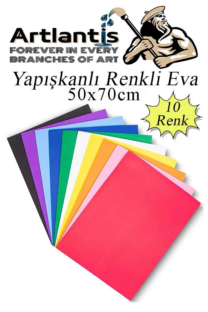 Ürün Adı: Yapışkanlı Eva 50x70 cm 10 Renk 1 Paket Yapışkanlı Eva Süngeri 10'lu Okul Kreş Anasınıfı Elişi Etkinlikleri