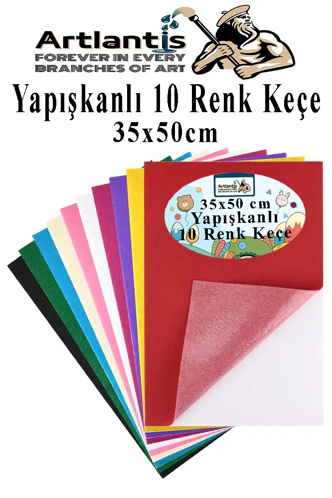 Ürün Adı: Yapışkanlı Keçe 35x50 cm 10 Renk 1 Paket 2.0 mm Renkli Hobi Keçesi Elişi Keçe Kumaşı Anasınıfı Kreş Okul Öncesi El Sanat
