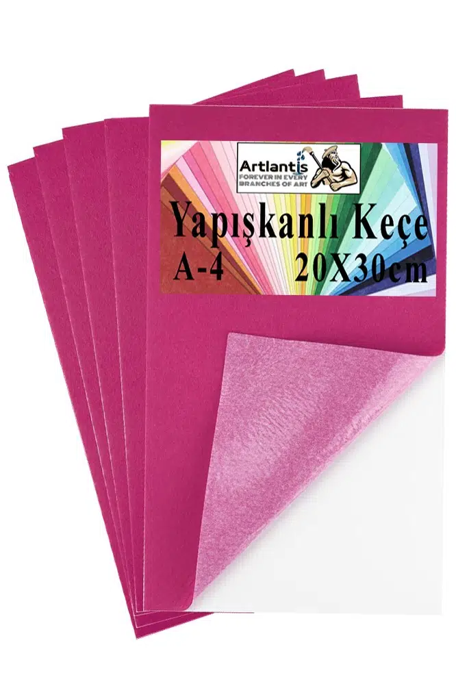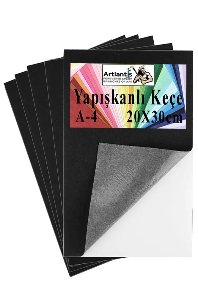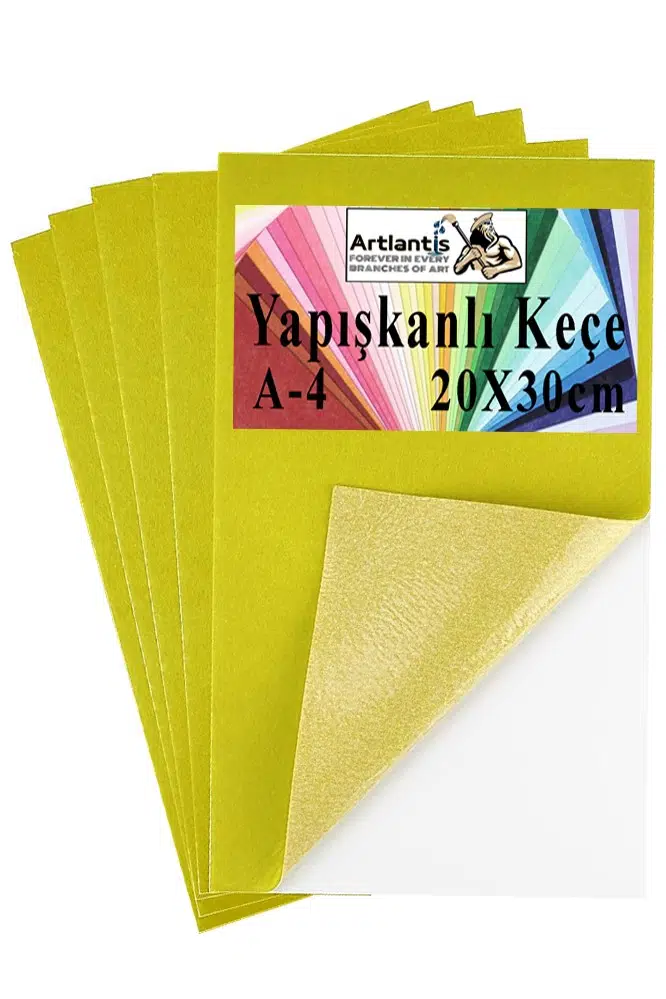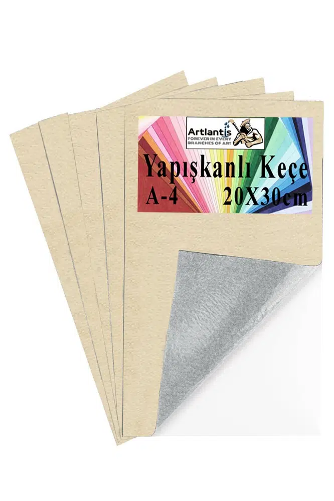 Ürün Adı: Yapışkanlı Keçe A4 20X30 cm 5 li 1 Paket 2.0 mm Kendinden Yapışkanlı Renkli Hobi Keçesi Elişi Keçe Kumaşı Anasınıfı Kreş