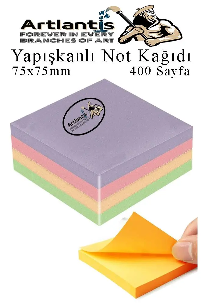 Ürün Adı: Yapışkanlı Not Kağıdı 4 Renk 400 Sayfa 1 Paket Harmoni Küp Blok Yapışkanlı Postit 75x75 mm Renkli