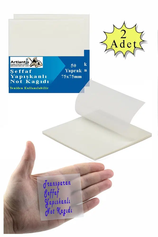 Ürün Adı: Yapışkanlı Şeffaf Not Kağıdı 50 Yaprak 2 Paket Kare Transparan Postit 75x75mm Yarı Saydam İşaretleyici Aydınger Not