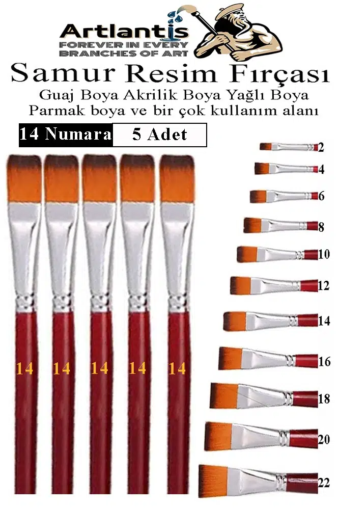 Ürün Adı: Yassı Uçlu 14 Numara Resim Fırçası 5 li 1 Paket Samur Kesik Uçlu Fırça Seti Guaj Sulu Akrilik Yağlı Boya Fırçaları