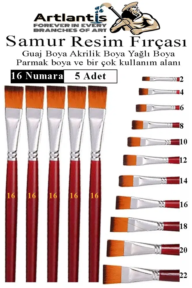 Ürün Adı: Yassı Uçlu 16 Numara Resim Fırçası 5 li 1 Paket Samur Kesik Uçlu Fırça Seti Guaj Sulu Akrilik Yağlı Boya Fırçaları