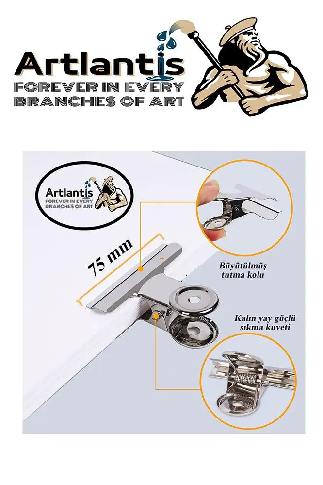 - 75 mm metal kıskaç ayrı ayrı kağıtlara almış olduğunuz notları, sizin için değerli olan evrakları organize toplamak için kullanılan bir araçtır. Evraklarınızı tek bir noktada ve zarar vermeden dosyalayabilirsiniz.