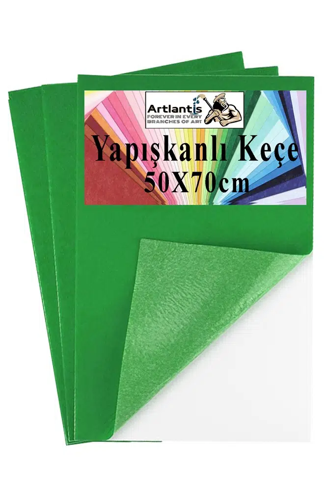 Ürün Adı: Yeşil Yapışkanlı Keçe 50x70 cm 3 Adet 2.0 mm Kendinden Yapışkanlı Renkli Hobi Keçesi Elişi Keçe Kumaşı Anasınıfı