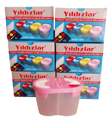 EtiketlerYıldızlar Pembe Fırça Temizleme Su Kabı İki Bölmeli Sulu Boya Su Kabı 1 Adet