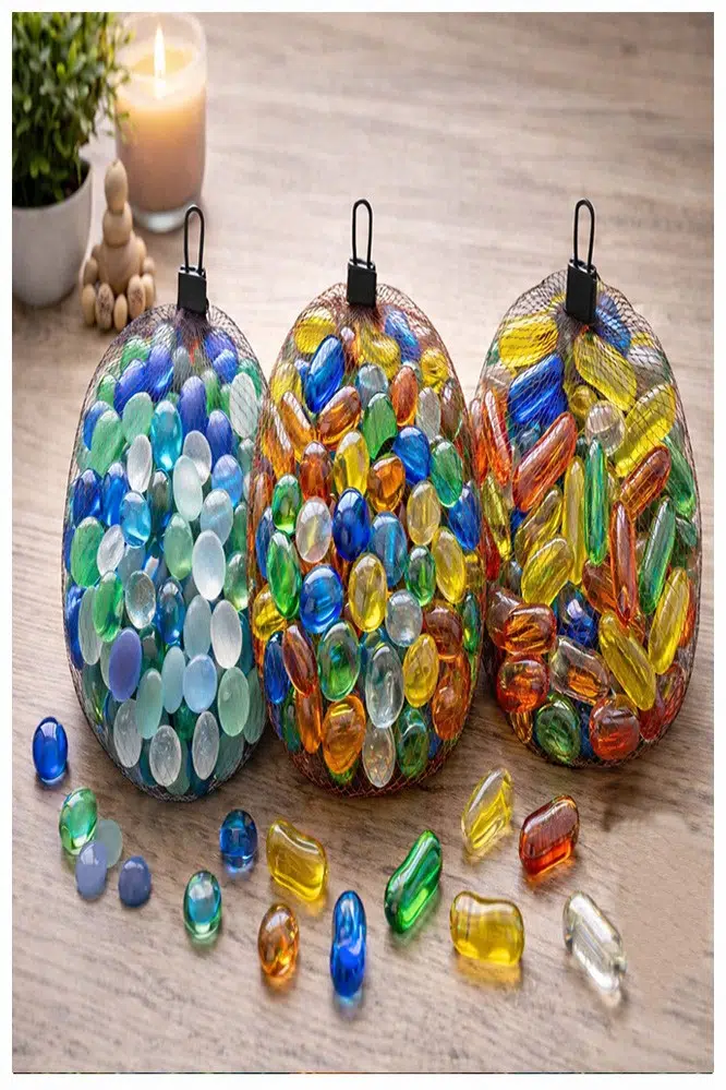 Ürün Adı: Yuvarlak Oval Mat Buzul Ve Renkli Dekoratif Cam Taşlar 50 Li 3 Adet Akvaryum Vazo Taşları Dekoratif Taş