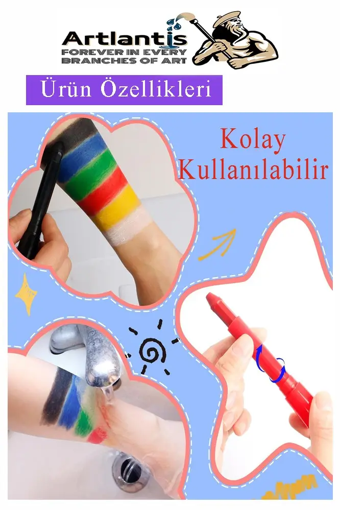 Kolay Uygulama ve Kalıcılık: Krem bazlı yapısı, yüz boyasını kolayca uygulamanıza yardımcı olur. Renkler cilde mükemmel bir şekilde tutunur ve uzun süre dayanıklılık sağlar. Su bazlıdır, bu da temizlenmesini kolaylaştırır.