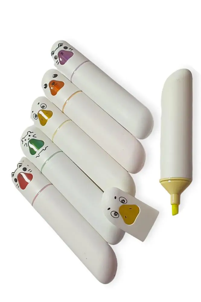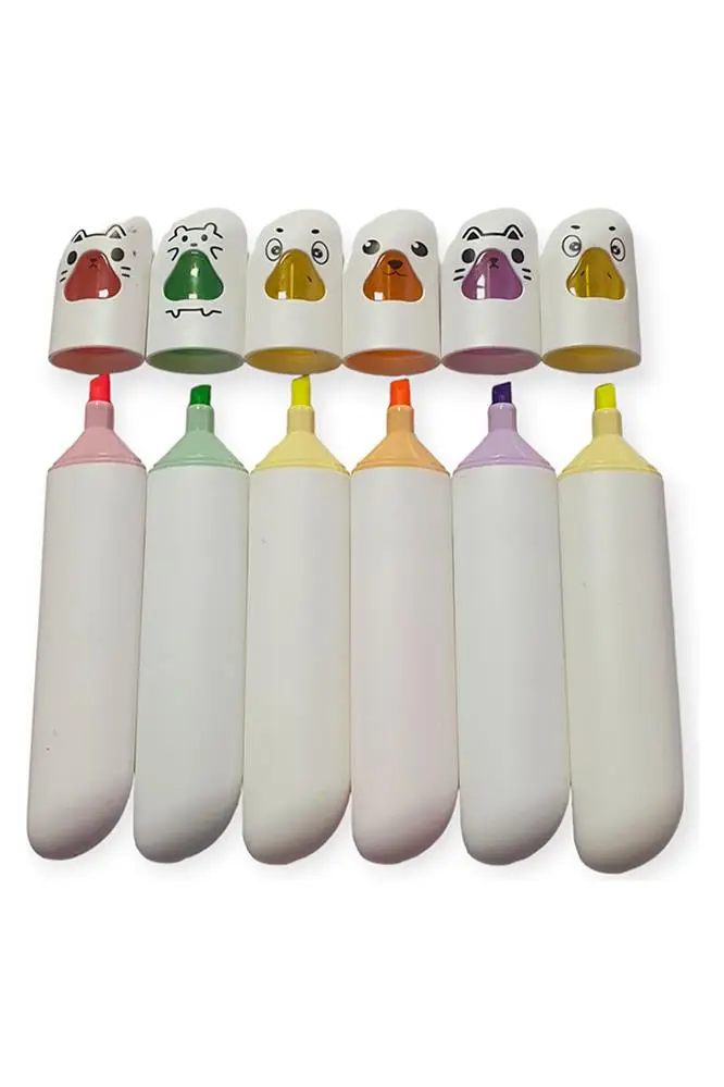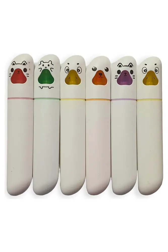 Ürün Adı: Yüz İfadeli 6 Renk Fosforlu Keçe Uçlu Kalem 1 Paket 6 lı İşaret Kalemi Fosforlu Kalem