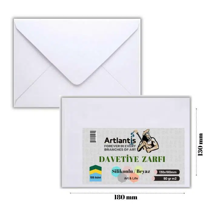 - Artlantis Zarf Davetiye Zarfı Beyaz 1.Kalite Hamur 70 gr 100'lü 13 cm x 18 cm