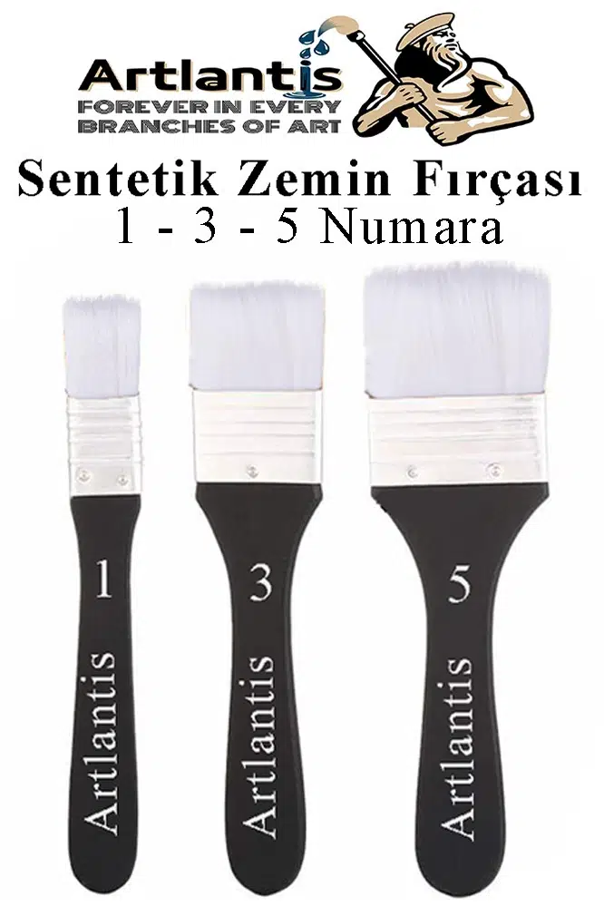Ürün Adı: Zemin Fırçası 1, 3 ve 5 Numara 3 Adet Siyah Saplı Beyaz Fırça Kıllı Sentetik İpek Uçlu Kıl Akrilik Guaj Yağlı Boya Fırça