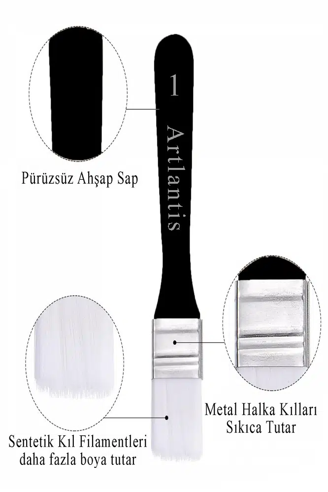 Hafif ve Taşınabilir: pürüzsüz Siyah sapıyla, sentetik beyaz fırça kılları tutması kolaydır, taşıma ve saklama için hafiftir; kalın uç ve ince bel tasarımlı sap, iyi kontroller ve güzel sonuçlar sağlar. Esas olarak naylon kıllardan ve ahşap saplardan yapılmıştır, güvenilir ve dayanıklı, yumuşak ve güçlü, güvenli ve kullanımı kolay, akrilik boyama için bu büyük boya fırçaları, solması veya kaybolması kolay olmayan sert ve dik kıllara sahiptir. Karıştırma yağlı boya fırçası öğrenciler, öğretmenler, ressamlar, sanatçılar ve yeni başlayanlar için uygundur; Suluboya resim, tutkal fırçalama, gesso, vernik, toz temizleme, yağlı boya, akrilik boyama, ev kullanımı vb. için uygulanabilir