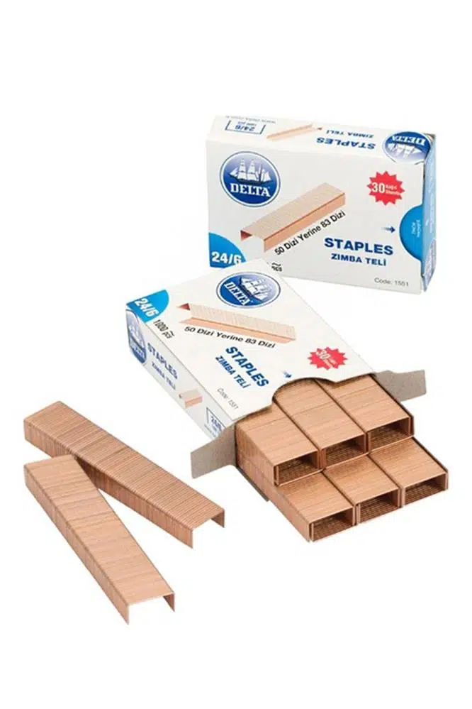 Ürün Adı: Zımba Teli 24/6 Bakır 1000 lik 1 Paket Büyük Zımba Teli Sarı 30 Yaprak Zımbalama Kapasiteli Büro Ofis Okul