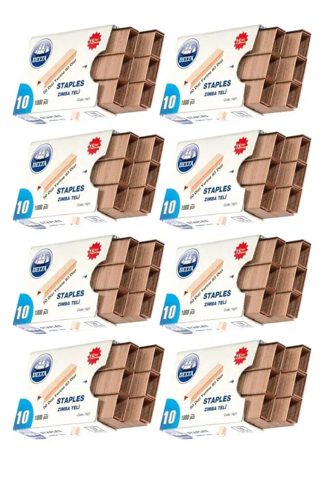 Ürün Adı: Zımba Teli Küçük No:10 1000 li Bakır Sarı 8 Paket Küçük Delta Zımba Teli 15 Yaprak Zımbalama Kapasiteli Büro Ofis Okul