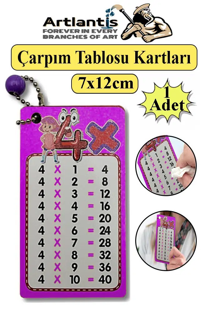 ·* Kalıcı Öğrenme Sağlar: Görsel materyallerle desteklenen öğrenme, bilgilerin akılda daha kalıcı olmasına yardımcı olur.* Hem Eğlenceli Hem Faydalı: Çocuğunuzun temel matematik becerilerini geliştirirken aynı zamanda keyifli vakit geçirmesini sağlar.*Bu sevimli ve kullanışlı çarpım tablosuyla çocuğunuzun matematik yolculuğunu renklendirin! Hemen sipariş verin, öğrenmenin keyfini çıkarın!